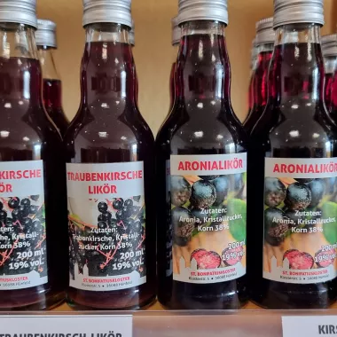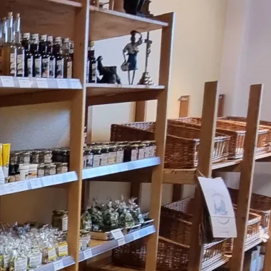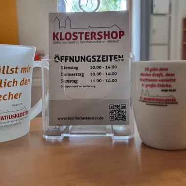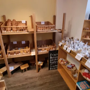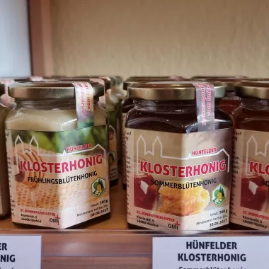 Im Klostershop des Bonifatiusklosters in Hünfeld finden Sie eine vielfältige Auswahl an Erzeugnissen aus klösterlicher Produktion: Honig von den Klosterbienen, Liköre nach alten Klosterrezepten, Eingemachtes und vieles mehr.