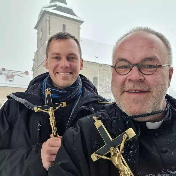 Im Jahr 1895 haben wir hier als Ordensgemeinschaft begonnen. Heute leben und wirken wir als Oblatenmissionare (OMI) mit 29 Patres und Brüder an diesem besonderen Ort. Gemeinsam gestalten wir das geistliche Leben im Kloster und in der Klosterkirche – im Gebet, in der Feier der Liturgie und in der Begegnung mit den Menschen, die zu uns kommen.