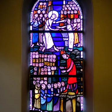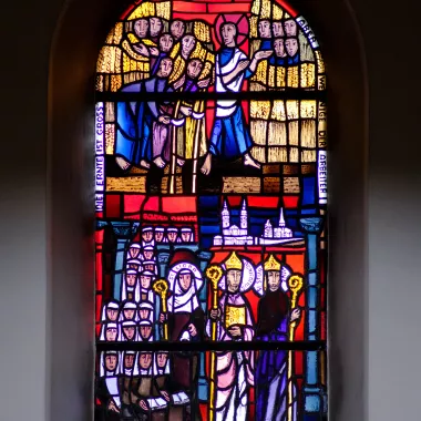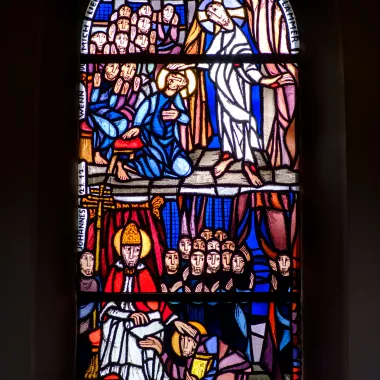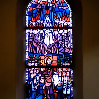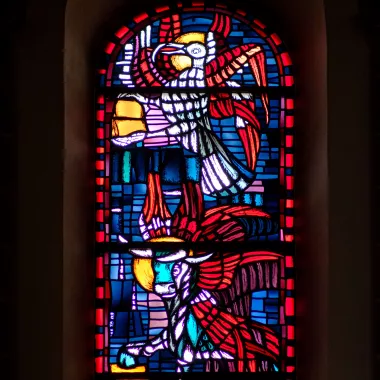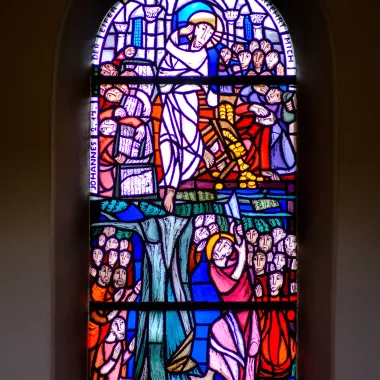 Dass jeder Christ auf seine Weise Zeuge und Diener des Glaubens sein soll, wird im Langhaus vor allem in den Fenstern aus dem Leben des heiligen Bonifatius erzählt.