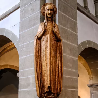 Die überlebensgroße Marienplastik - Sinnbild der Kirche - schnitzte Hildegard Hendrichs, Erfurt.